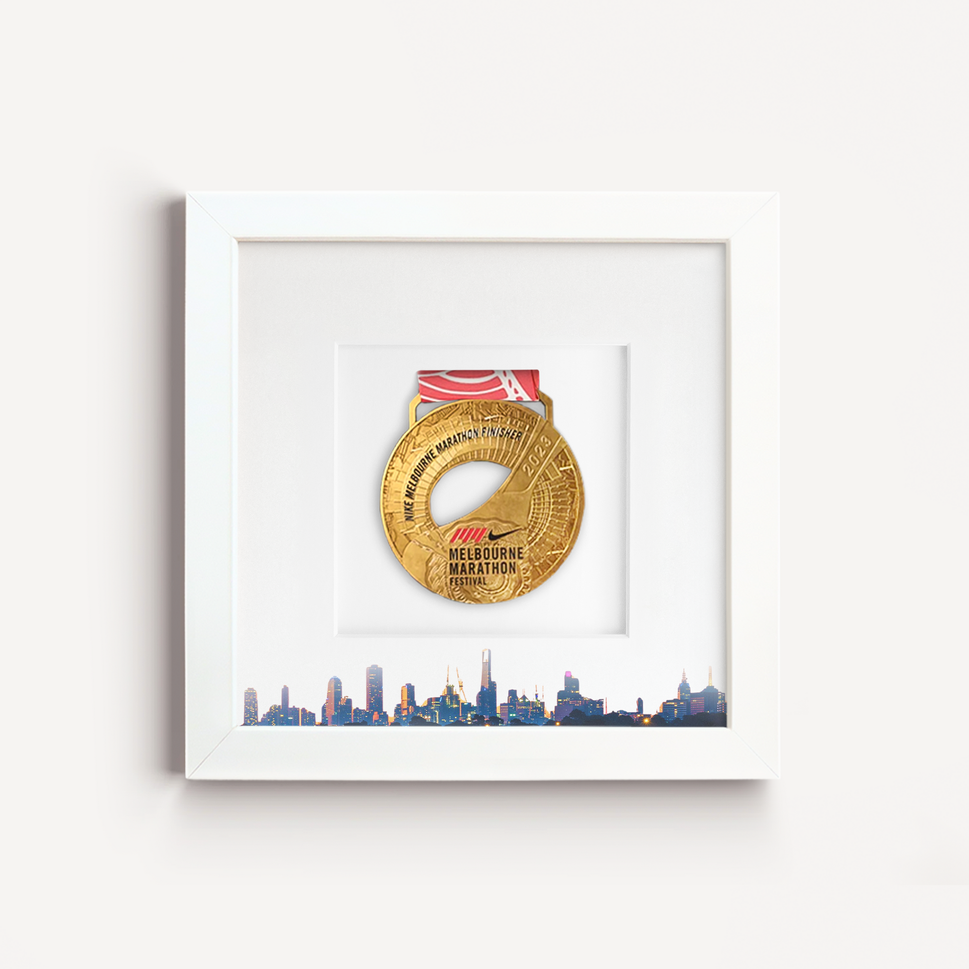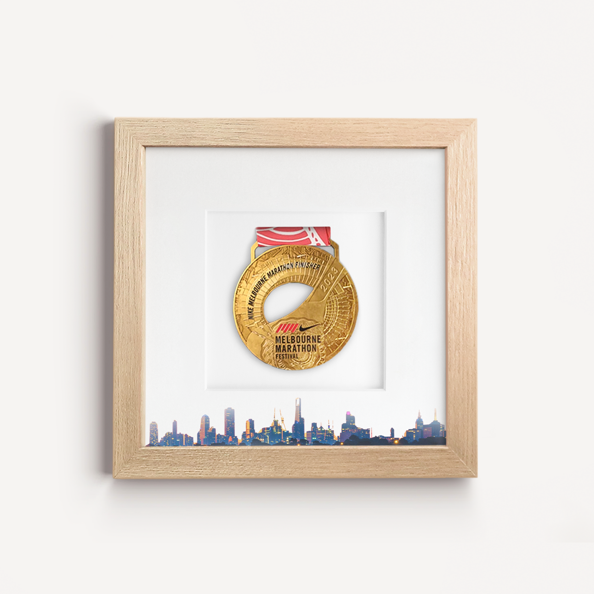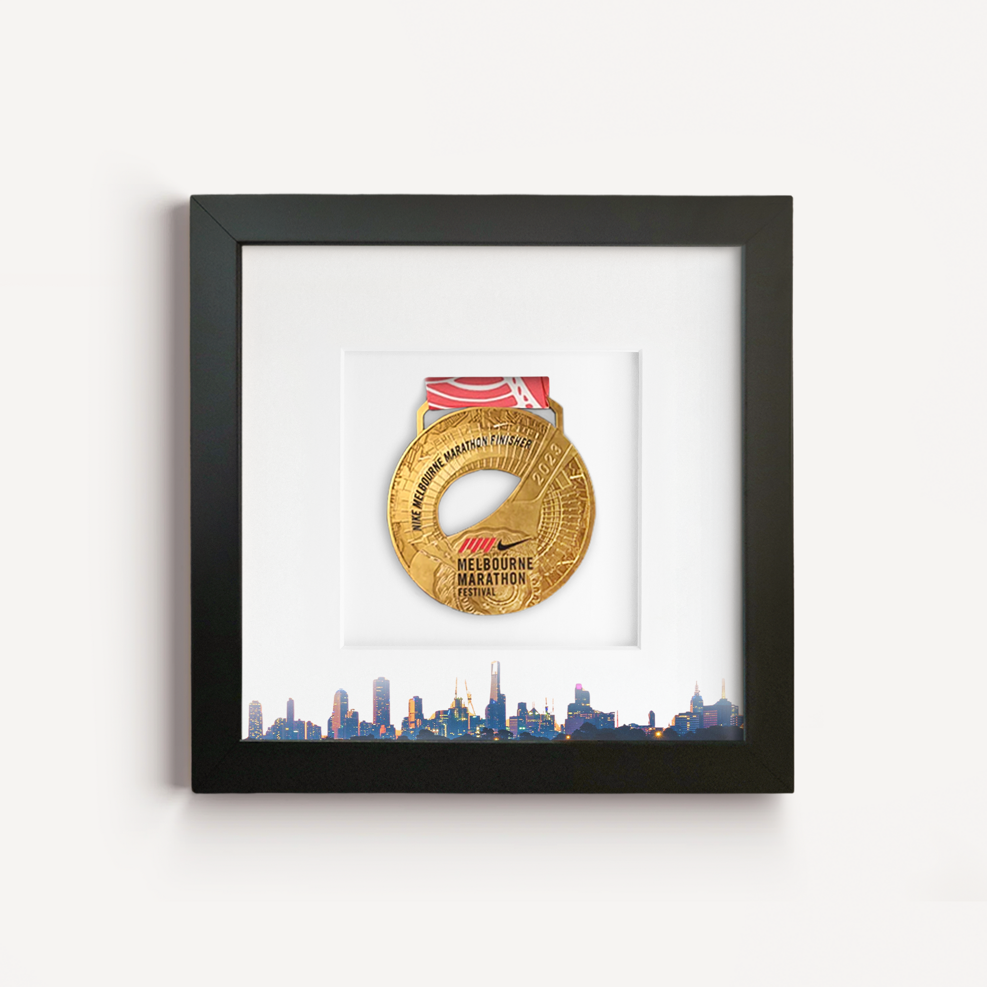 The perfect medal display frame for athletes who have competed in the Melbourne Marathon as well as other major Melbourne-based events such as IRONMAN 70.3 Melbourne and Run Melbourne.